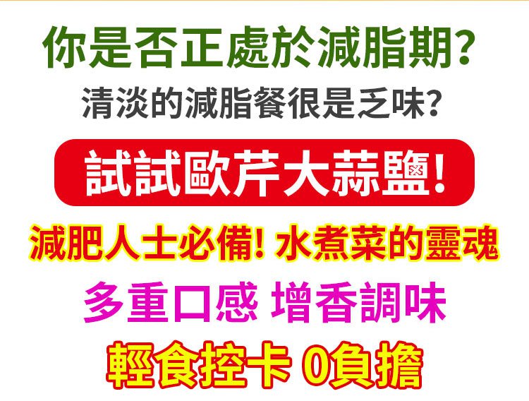 7分鐘前現在下單,讓你每道菜都讓人驚艷! - 0添加健康美味!【歐芹大蒜鹽】 12入組,均價106 NT$1272