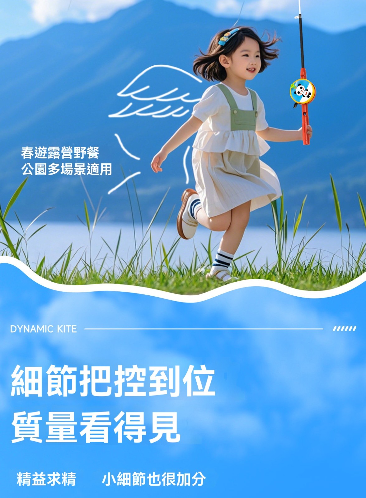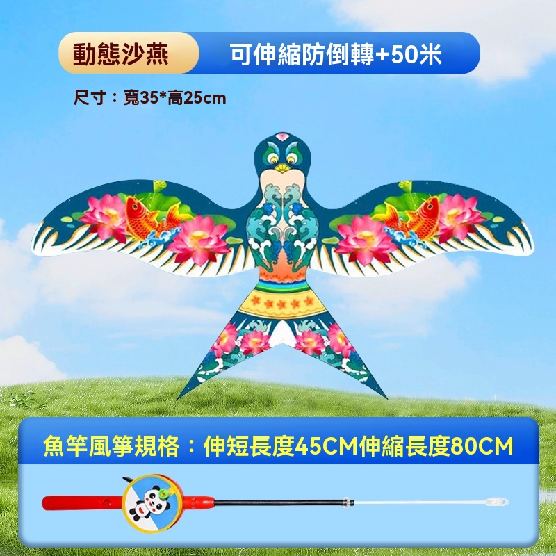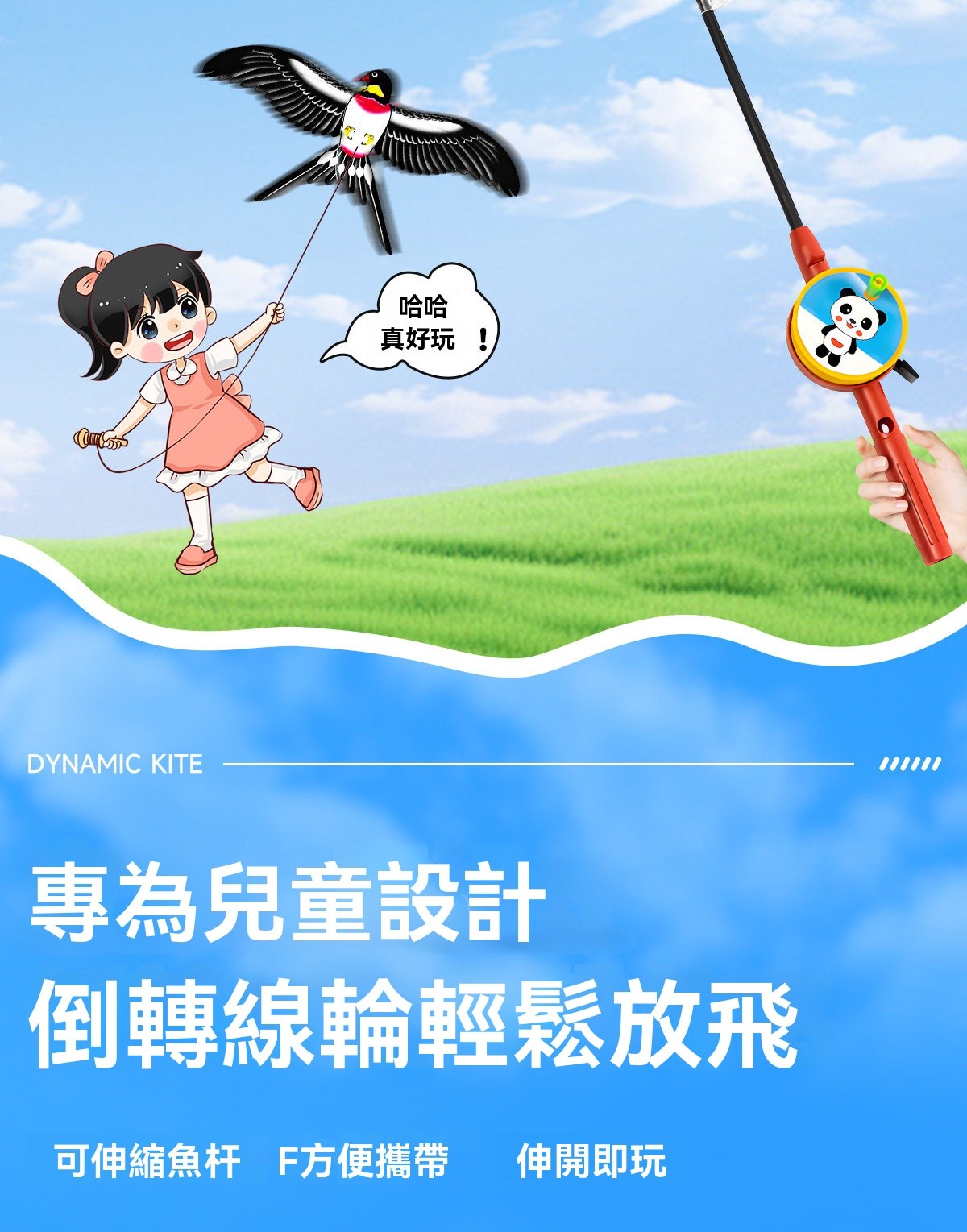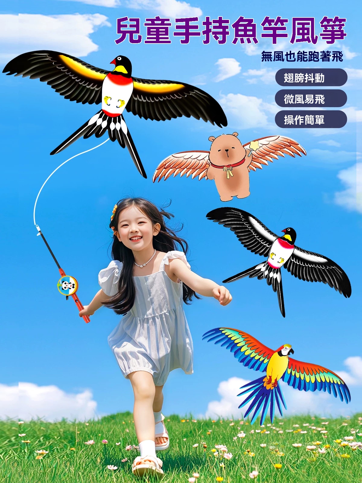 7分鐘前釣魚竿小風箏兒童手持新款迷你動態易飛戶外運動遊戲降落傘玩具 - 1入組 NT$998